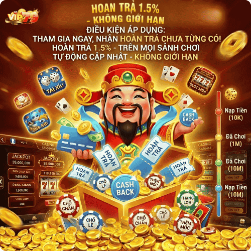 Cổng game VIP79 triển khai chương trình hoàn trả theo tuần dựa trên tổng số tiền cược. Tỷ lệ hoàn trả có thể từ 0.3%-1% tùy theo cấp độ thành viên. Số tiền hoàn sẽ được chuyển trực tiếp vào tài khoản chính cho người chơi.