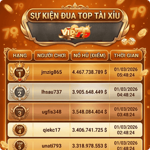 Sự kiện VIP79: tổ chức đua top cược theo tuần hoặc theo tháng đối với từng loại game như Tài Xỉu, xóc đĩa, casino. Người chơi ở vị trí cao thường nhận được tiền thưởng, giftcode hoặc quà tặng giá trị theo từng đợt sự kiện.